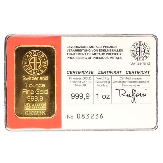1 oz Gold Bar | Argor-Heraeus | 2nd choice