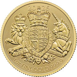 1 uncja złotej monety The Royal Arms 2025 – brytyjska emisja próby 999,9. Doskonała inwestycja i kolekcjonerska perełka z prestiżowej mennicy The Royal Mint.