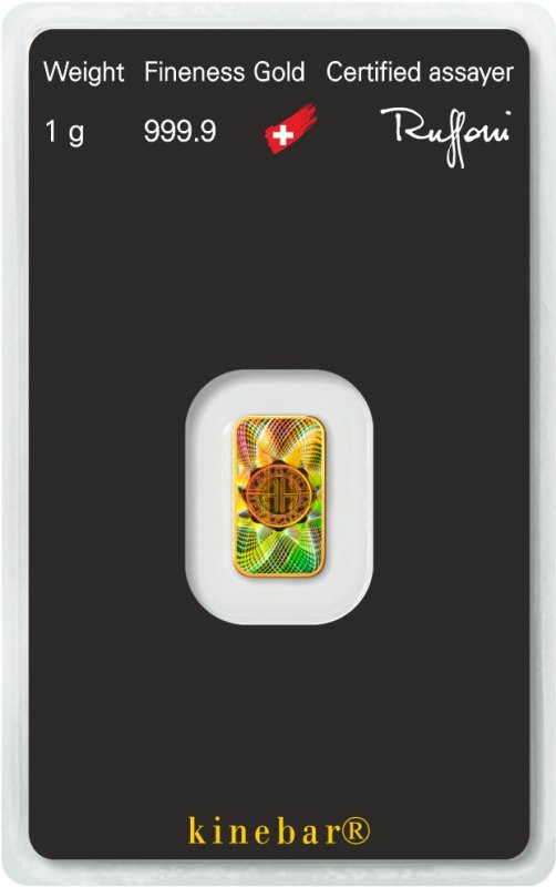 Tył sztabki zdobi hologram Kinegram™, który zmienia kolory i fakturę w zależności od kąta padania światła. To zabezpieczenie czyni sztabkę niemal niemożliwą do sfałszowania i jest jednym z powodów, dla których Kinebar jest ceniony na całym świecie.