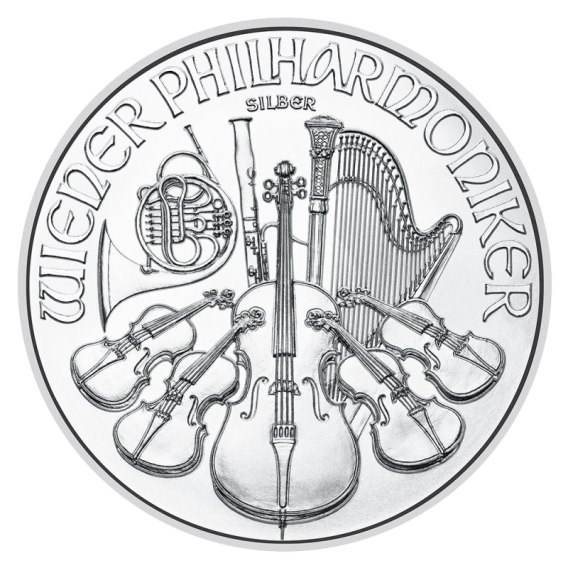 Na awersie widoczna jest kompozycja instrumentów muzycznych Wiedeńskiej Orkiestry Filharmonicznej – skrzypiec, wiolonczeli, fagotu, harfy i rogu. Projekt autorstwa Thomasa Pesendorfera symbolizuje bogatą tradycję muzyczną Wiednia, znanego jako światowa stolica muzyki klasycznej. Wokół znajdują się inskrypcje „Wiener Philharmoniker”, a także oznaczenia próby i wagi – 1 oz Ag 999.