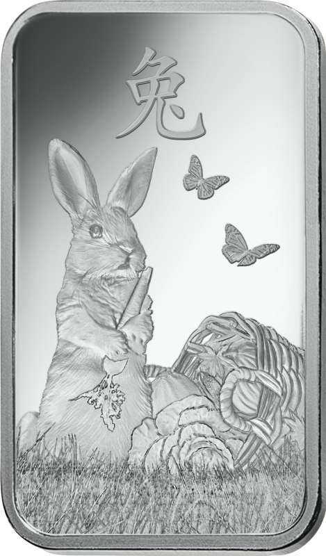 1 oz srebrna sztabka Lunar Królik 2023 od PAMP – czyste srebro 999.9, certyfikat autentyczności, urokliwy design na Rok Królika. Kup online w GoldInvest24!