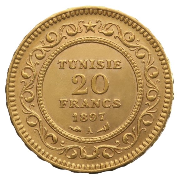 Seria złotych monet frankowych, emitowana w XIX i XX wieku w wielu krajach, była symbolem stabilności i wspólnej waluty gospodarczej Europy. Tunezyjskie franki, bite w niewielkich nakładach, są ciekawym uzupełnieniem kolekcji obok złotych monet inwestycyjnych takich jak 20 Franków Szwajcarskich czy 20 Franków Francuskich.